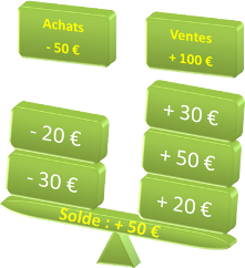 Le membre A vend pour 80 € et achète pour 50 € soit un solde de +30 €